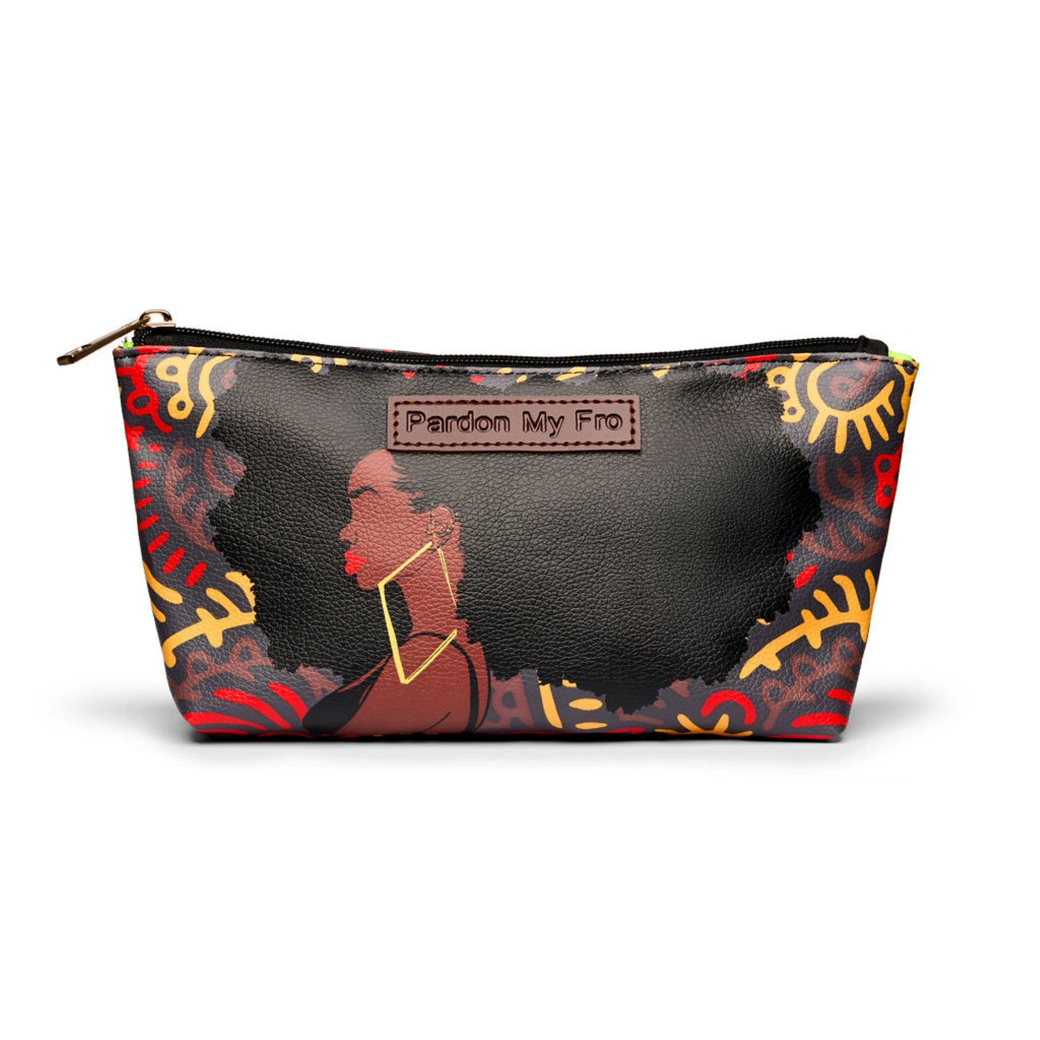 The Harlem Cosmetic Bag celebrates culture, confidence, and the kind of beauty that turns heads without trying. Dressed in a rich black canvas with red Afro-inspired patterns, this bag pays tribute to the rhythm, art, and attitude of Harlem — where boldness was born.